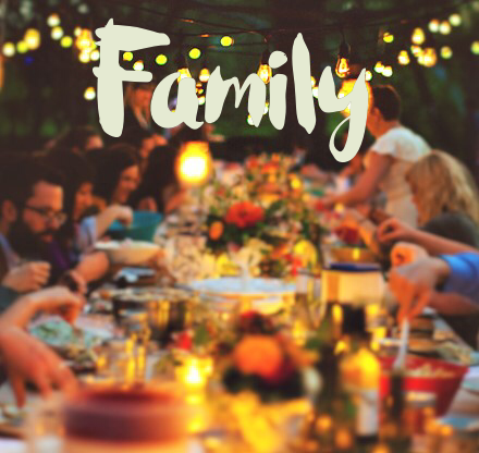 Airplane tickets, rental car and a hotel, all to surprise a niece who needed some love. That’s family. Sixteen people surrounding a table filled with taco fixings again on a Saturday…